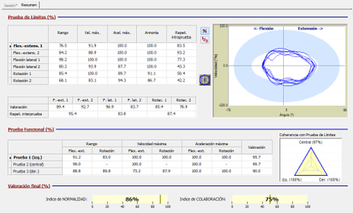 El software permite realizar valoraciones de miembro superior, miembro inferior y raquis. Se registran las amplitudes máximas de las articulaciones, y/o segmentos del raquis en todos los planos de movimiento anatómicos usando instrumentación electrónica que asiste a dicho registro.